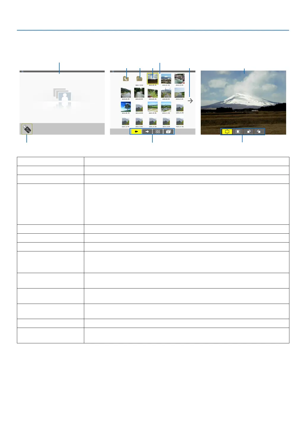 (11)Slideshowscreen Thisscreenisusedforautoplayback.Theslideswillbechangedautomatically.
