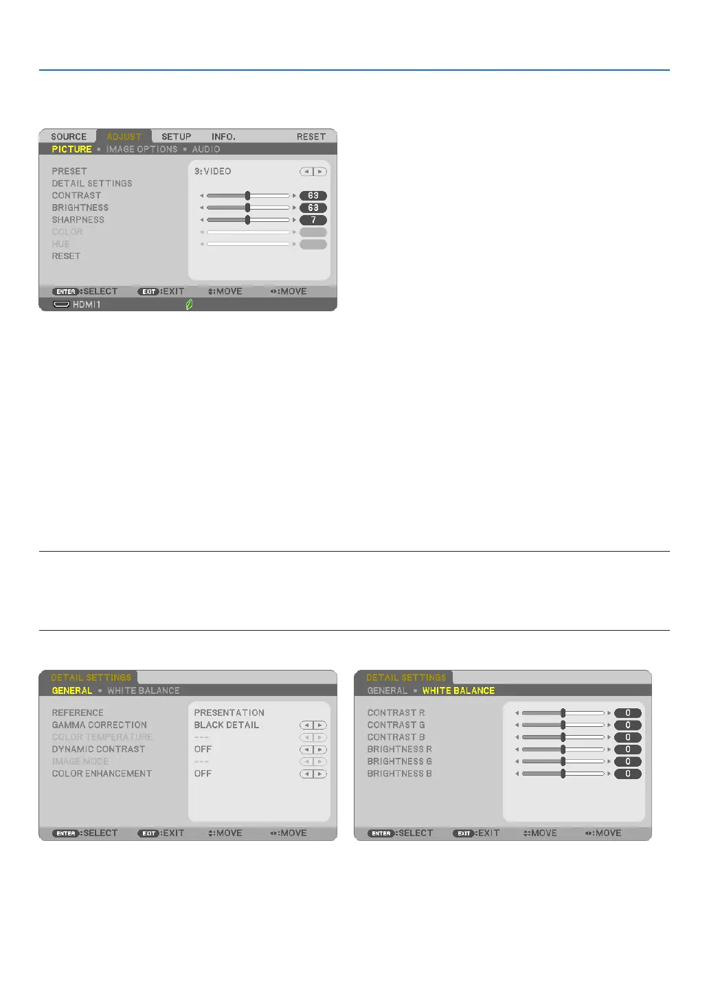 Therearesevenfactorypresetsoptimizedforvarioustypesofimages.Youcanalsouse[DETAILSETTINGS]toset