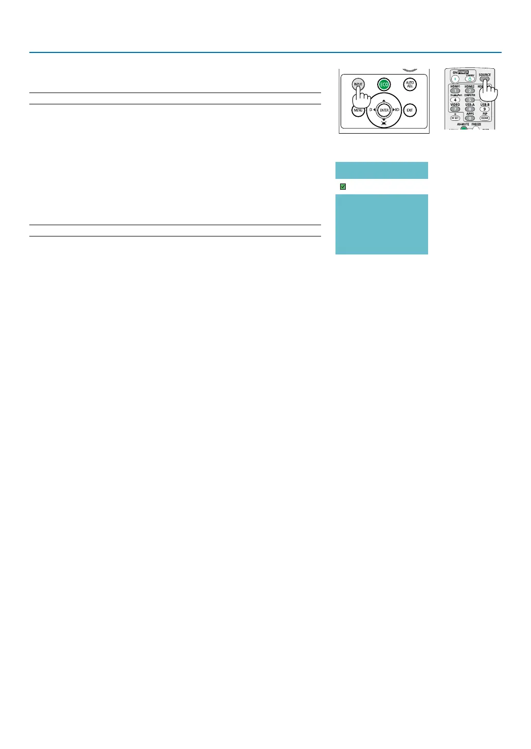input source and display it. The input source will change as follows: