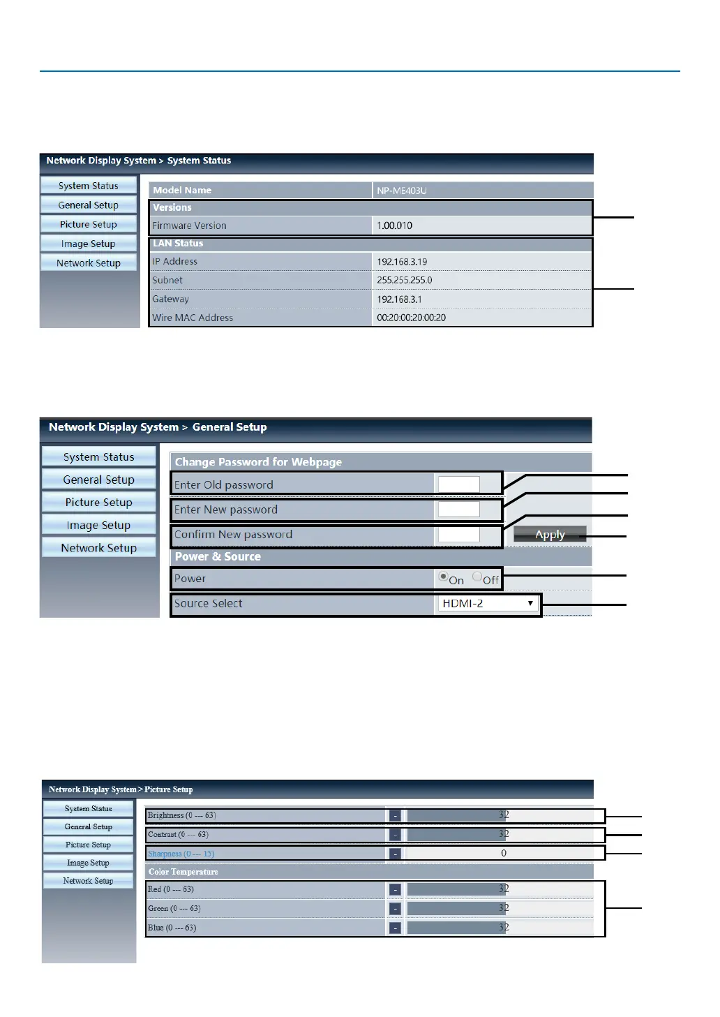 ⑤ Network setup: Click this option to display [Network setup] page.
