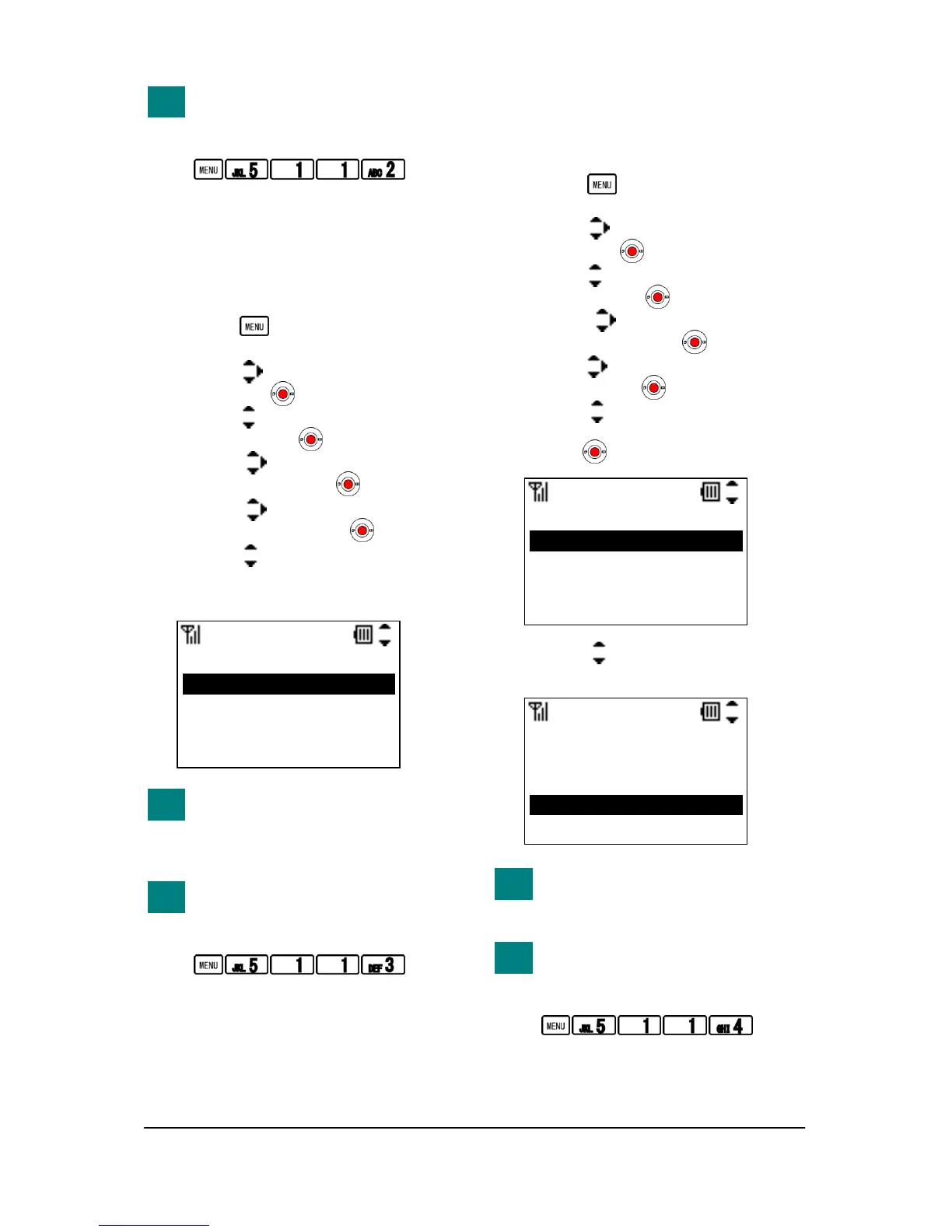menu by pressing the following keys.