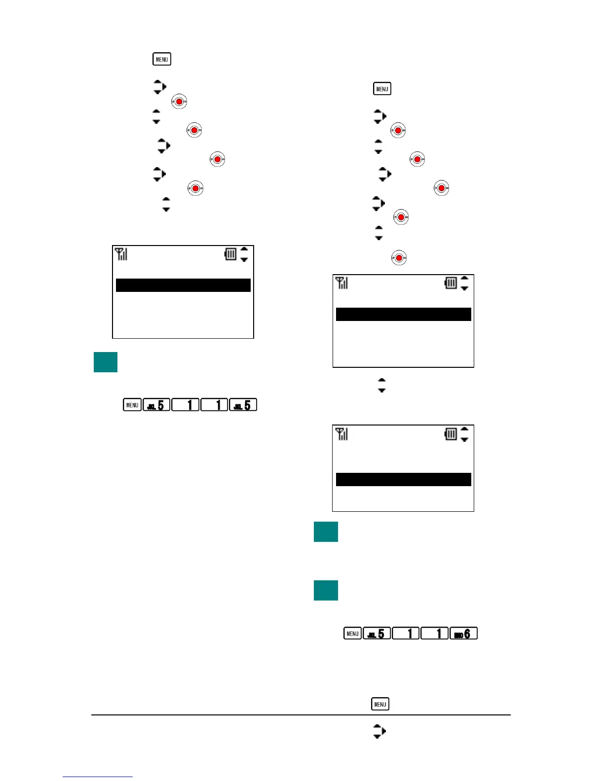 menu by pressing the following keys.