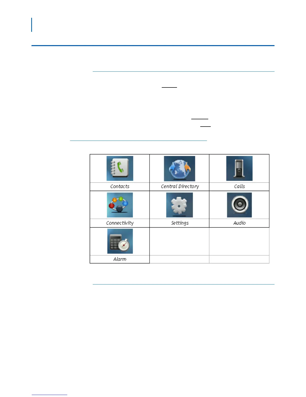 • To open the menu, press Menu. The handset displays the main menu