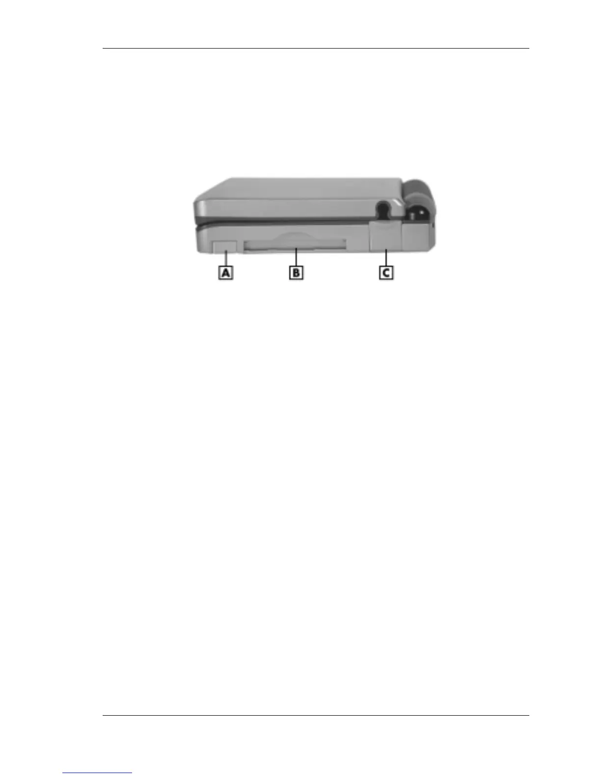 A – PC card eject button C – Modem port