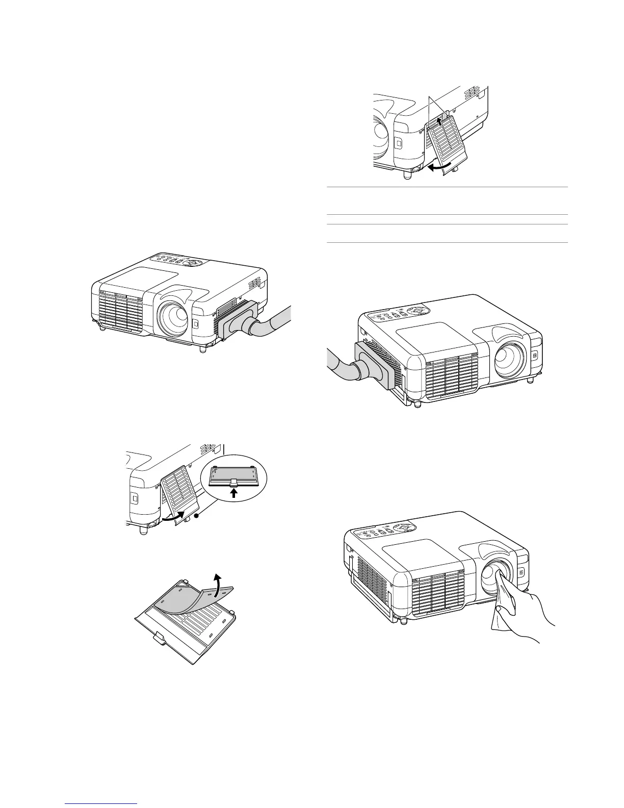 projector cabinet. Keep out dust and during filter replacement.