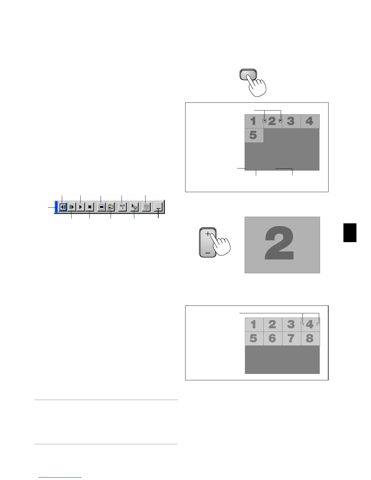 Play ............. Plays back automatically or manually depending on the