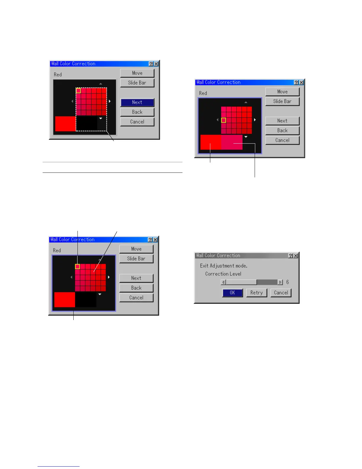 *To move the Manual Wall Color Correction (Red) screen, high-