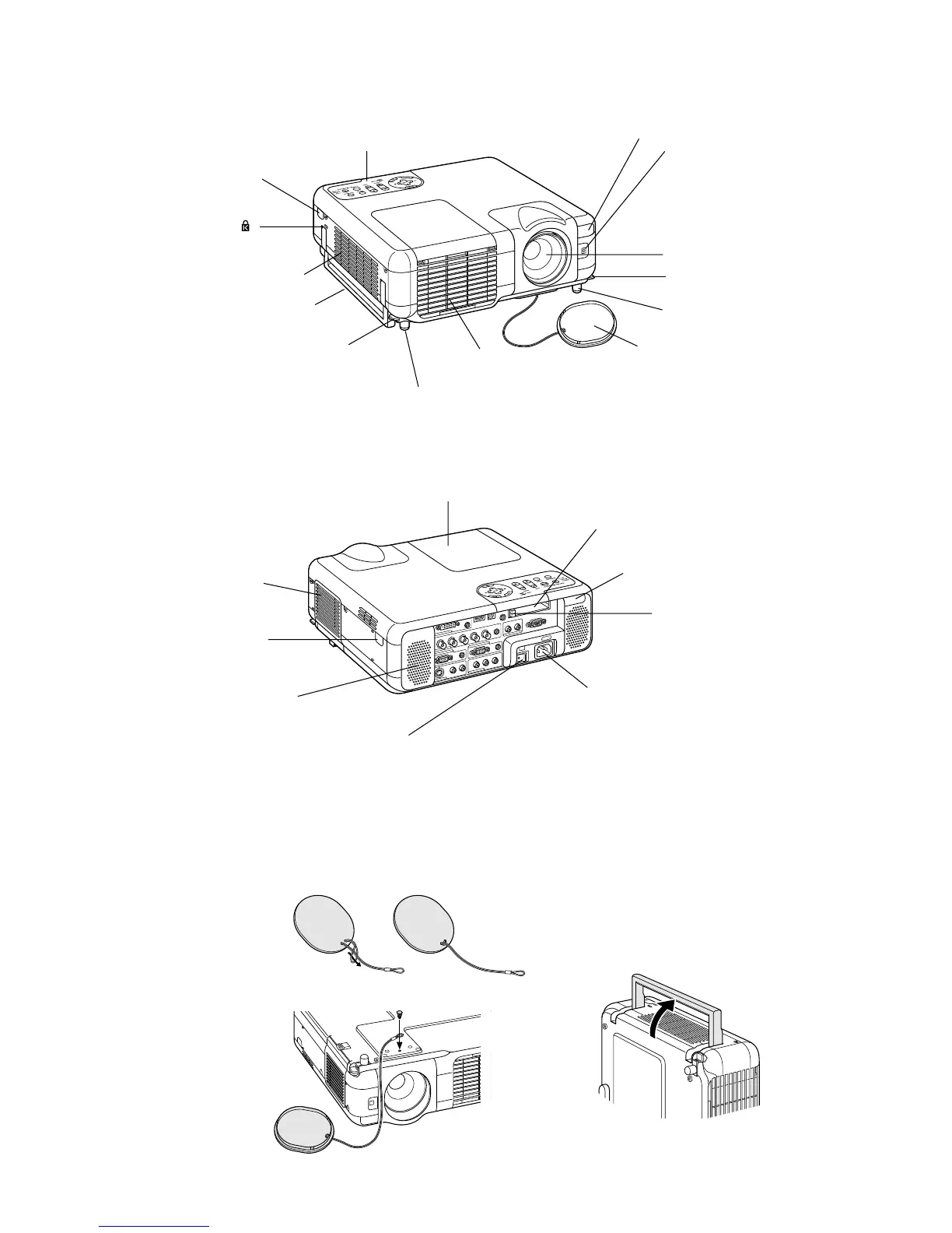 To attach the lens cap to the bottom with the supplied string and rivet: