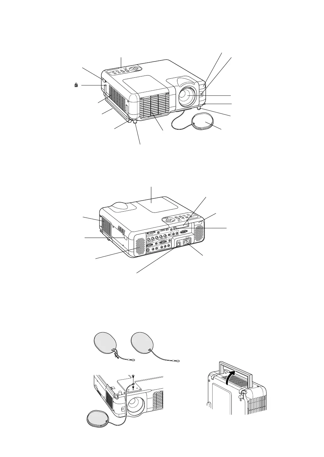 To attach the lens cap to the bottom with the supplied string and rivet: