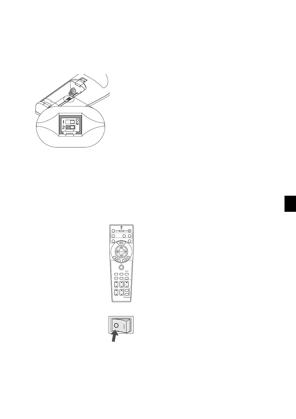 pen. On this model, an applicable projector selector switch (1) is not