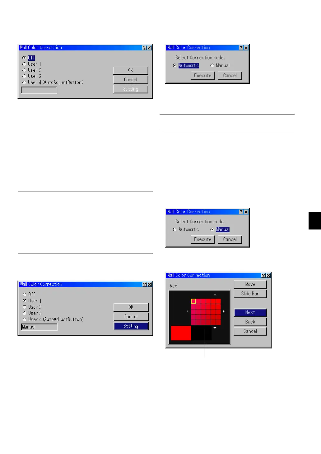 User 1 to 4 ..... Executes correction. Four settings can be saved.
