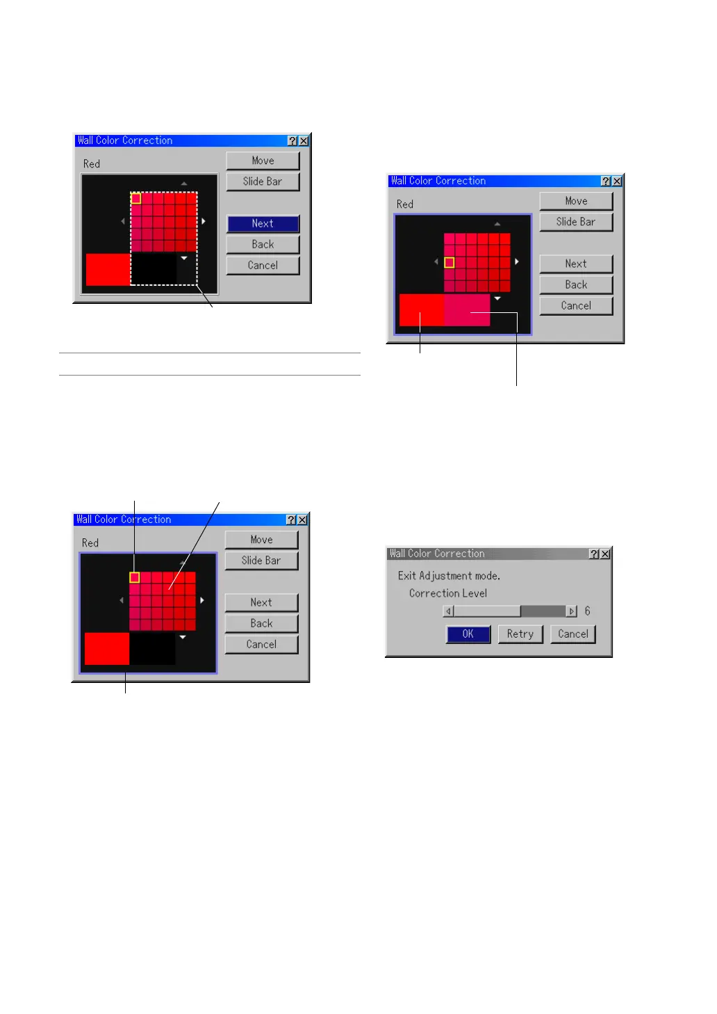 *To move the Manual Wall Color Correction (Red) screen, high-