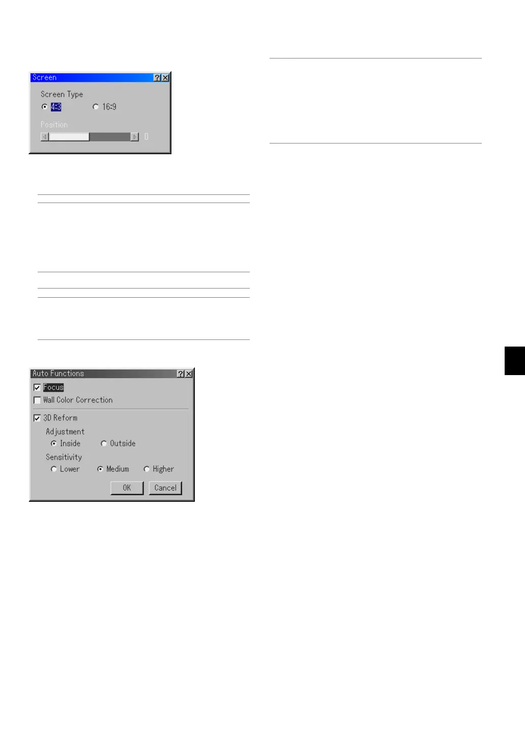 NOTE: During 3D Reform adjustment, "Screen Type" and "Screen Position"