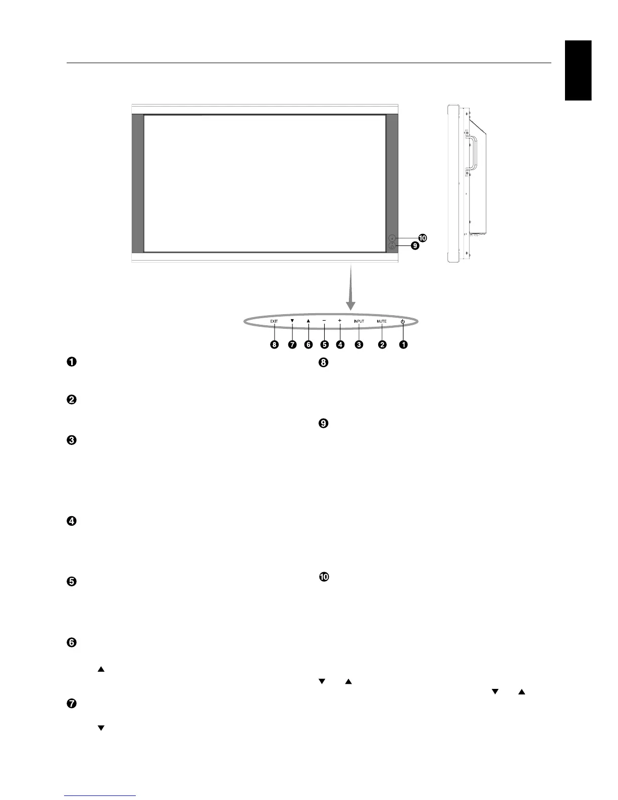 Acts as (-) button to decrease the adjustment with OSD menu.