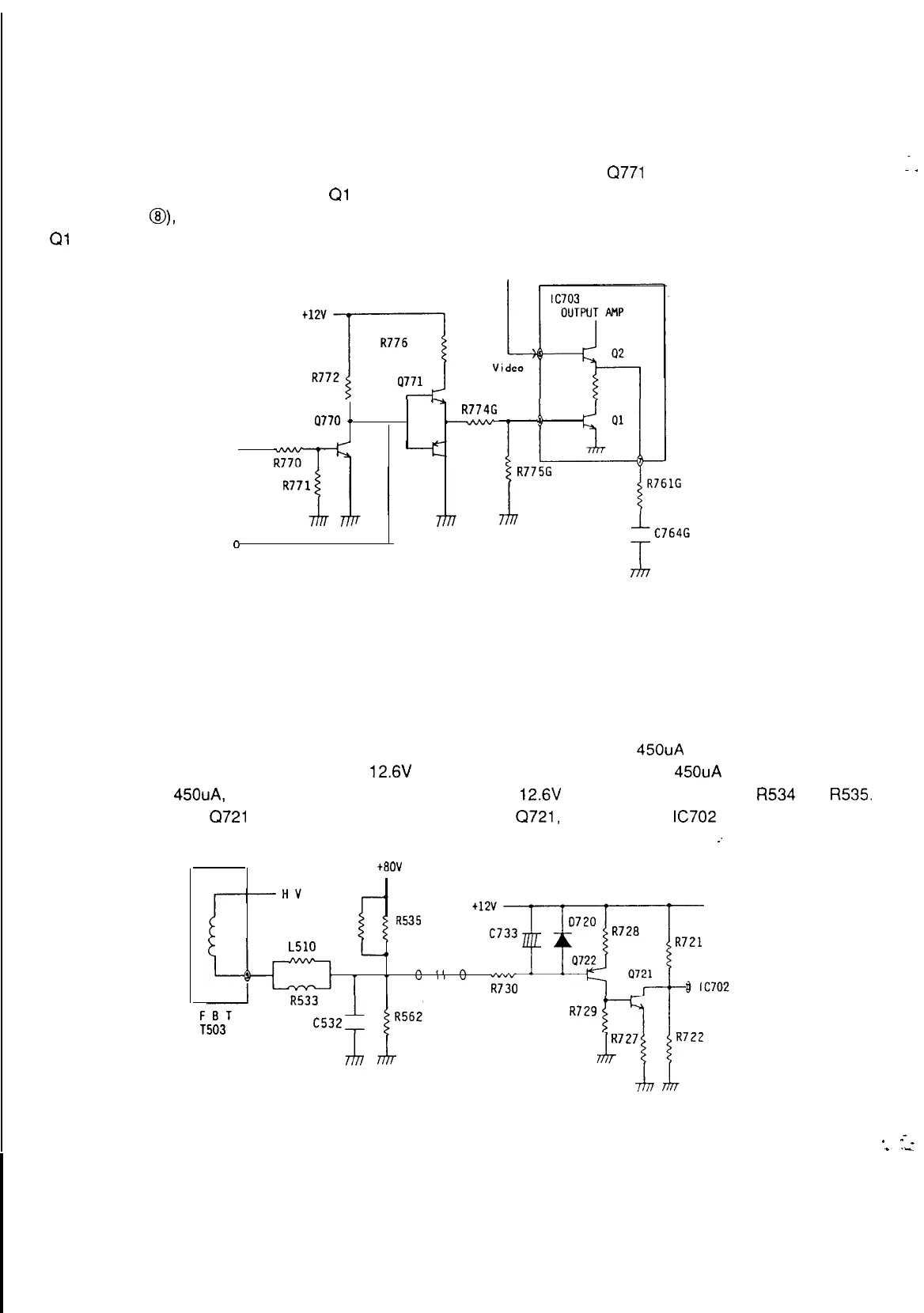 The maximum average current flowing through the CRT is’ controlled to under 450uA by limiting the video Vp-p