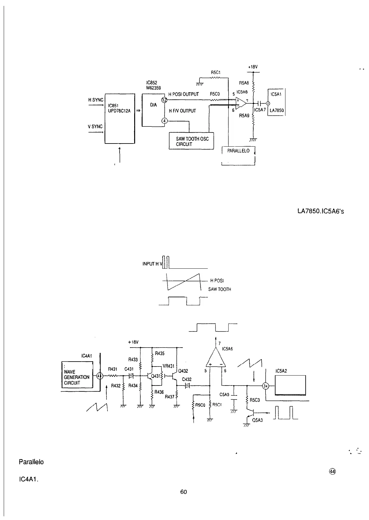 (Fig 5-l -3) PARALLEL0 DISTORTION correct circuit and SAW TOOTH OSC circuit