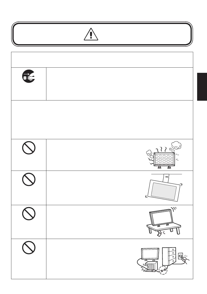 万一異常が発生したときは、電源プラグをすぐ抜きディスプレイを安全