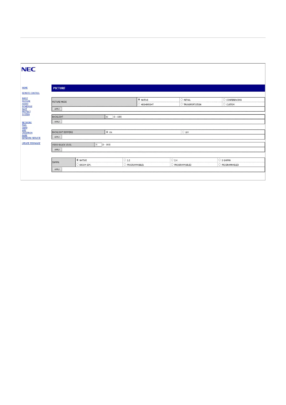 NOTE: The buttons in the monitor web controls function as follows: