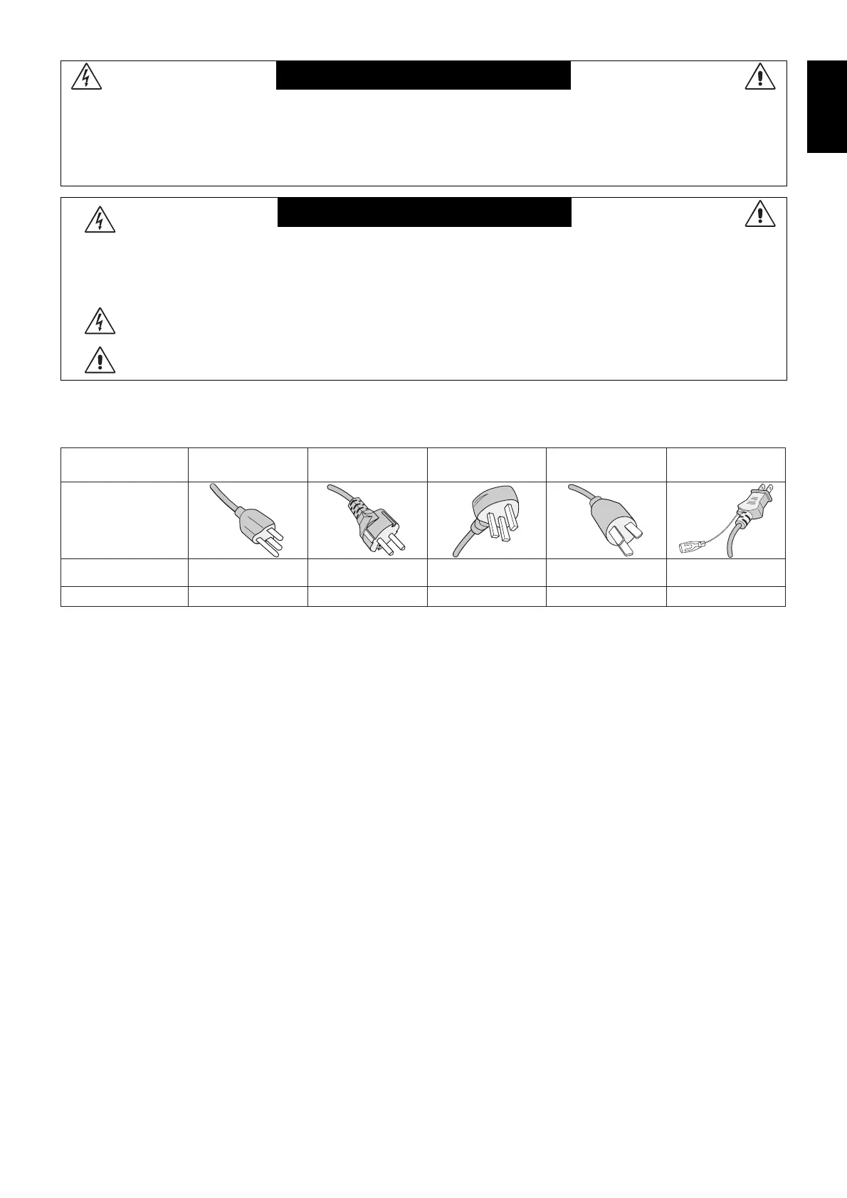 CAUTION: Please use the power cord provided with this display in accordance with the table below. If a power cord is not