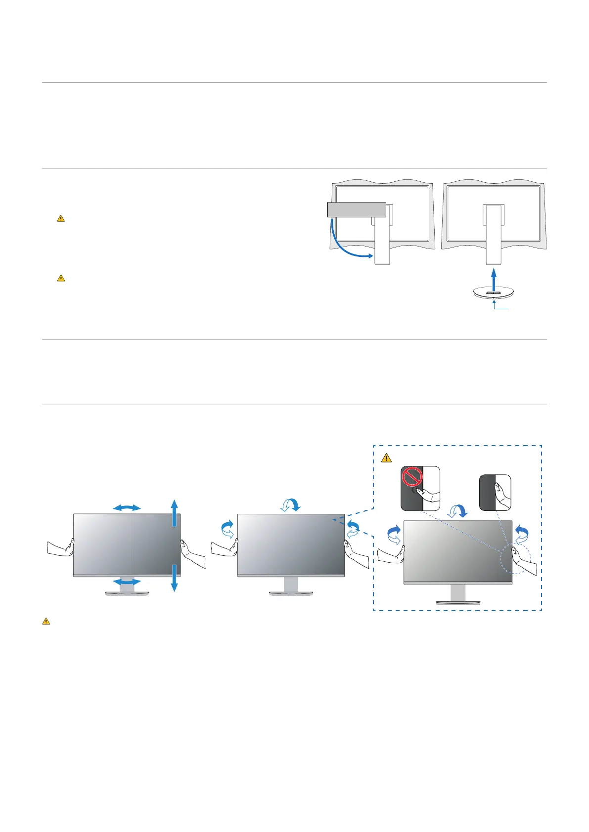 For screen rotation (pivot), hold the monitor on each side, lift to its maximum height and turn it from landscape to portrait.