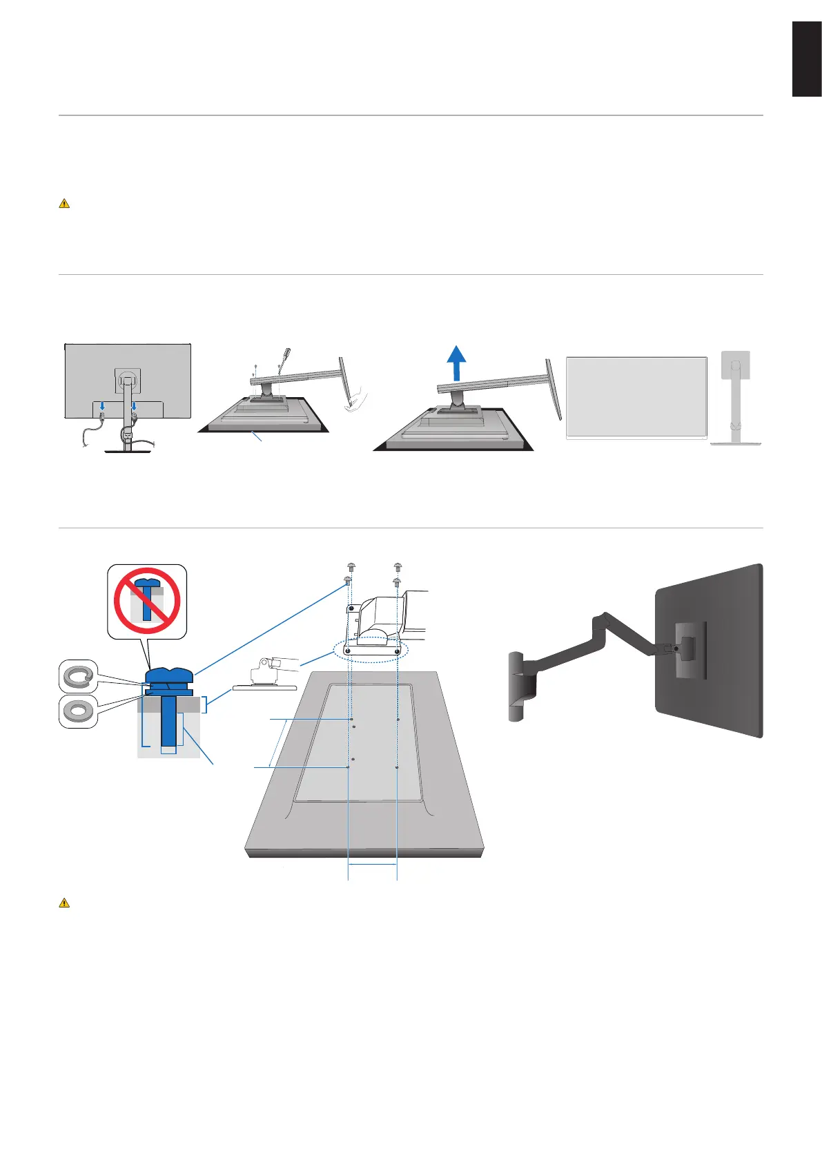 Using four screws that meet the specications listed below, attach the arm to the monitor.