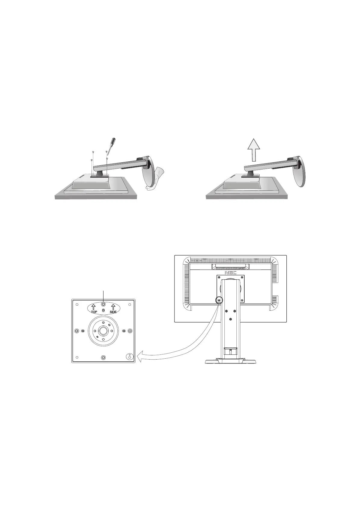 NOTE: Match “TOP SIDE” mark on stand to top side of the monitor head when re-attaching stand.