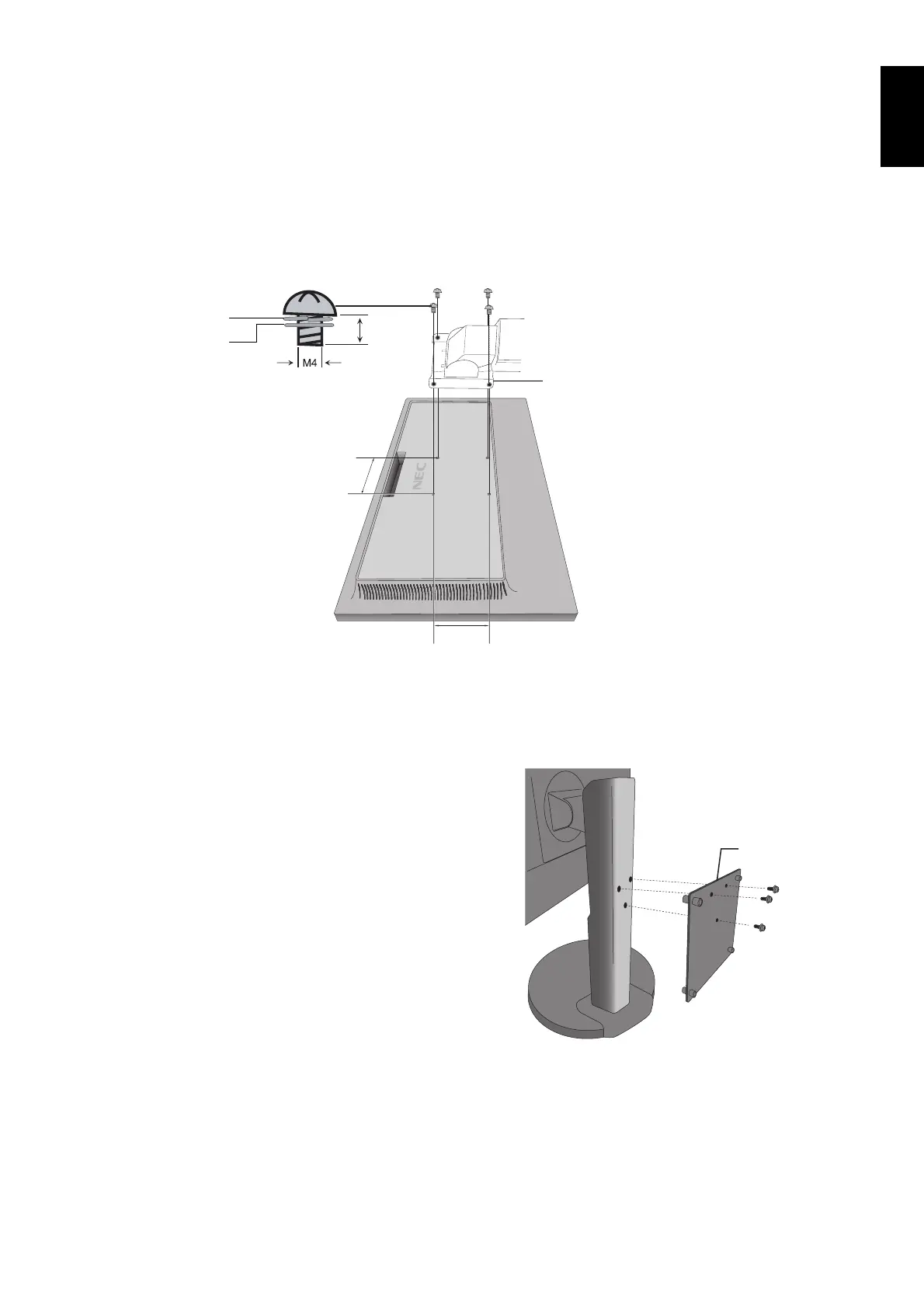 Caution: Use ONLY the screws (4 pcs) that were removed from the stand or the specifi ed screws (Figure F.1) to avoid