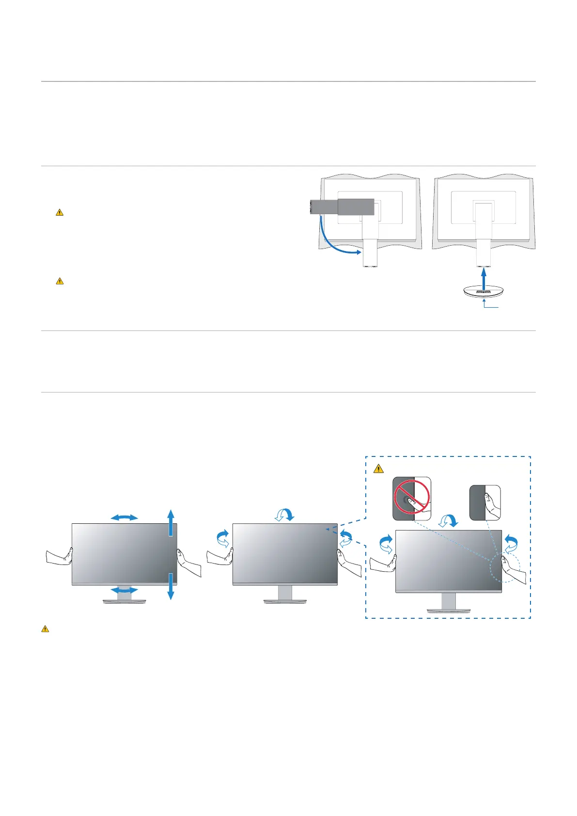 For screen rotation (pivot), hold the monitor on each side, lift to its maximum height and turn it from landscape to portrait.