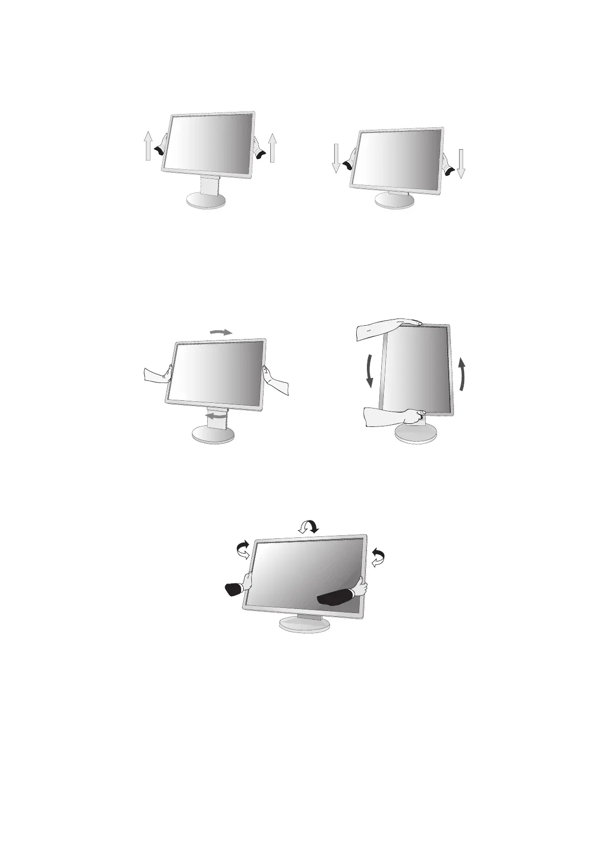To rotate screen, place a hand on each side of the monitor screen and turn clockwise from landscape to portrait or counter-