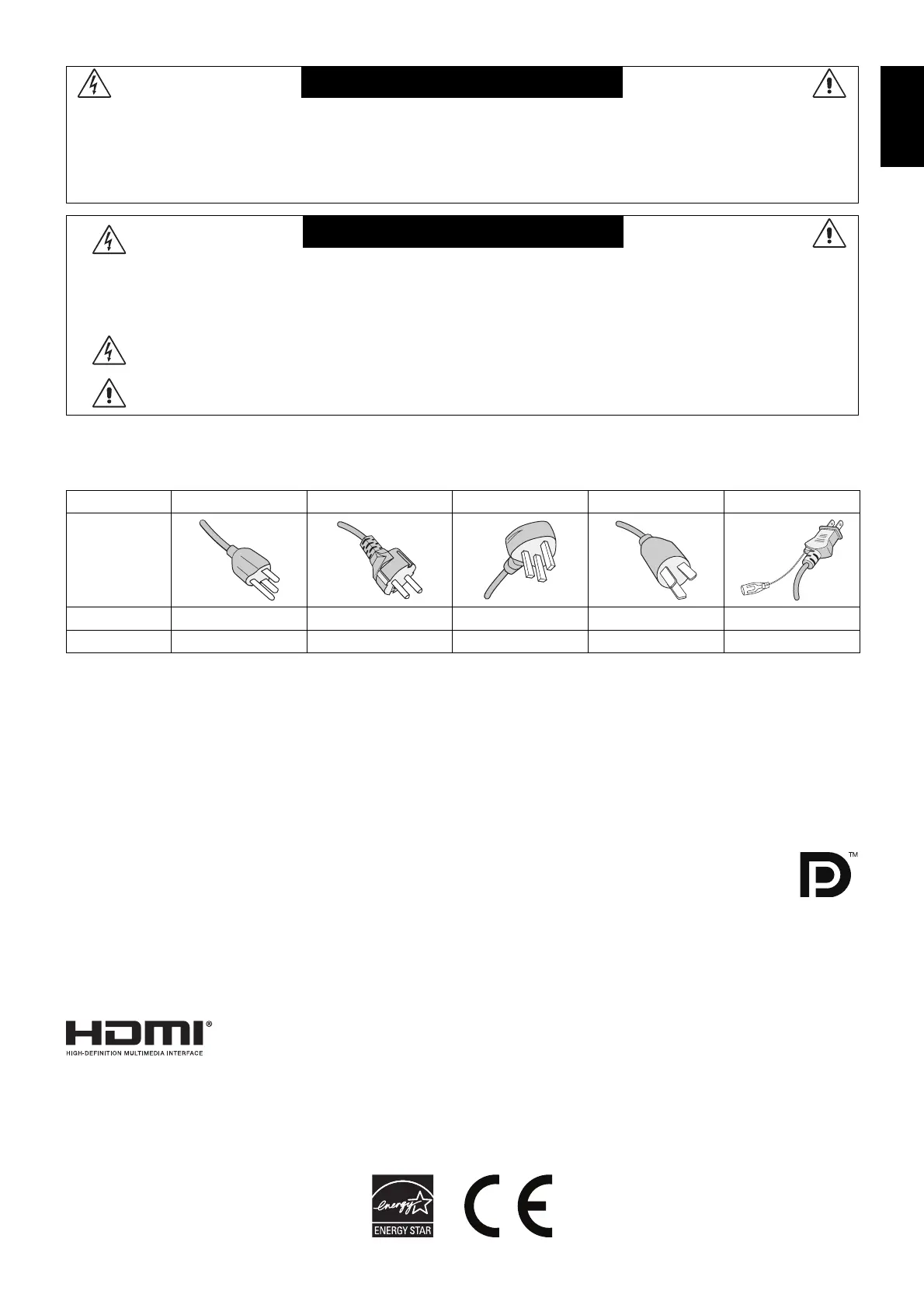 CAUTION: Please use the power cord provided with this display in accordance with the table below. If a power cord is not