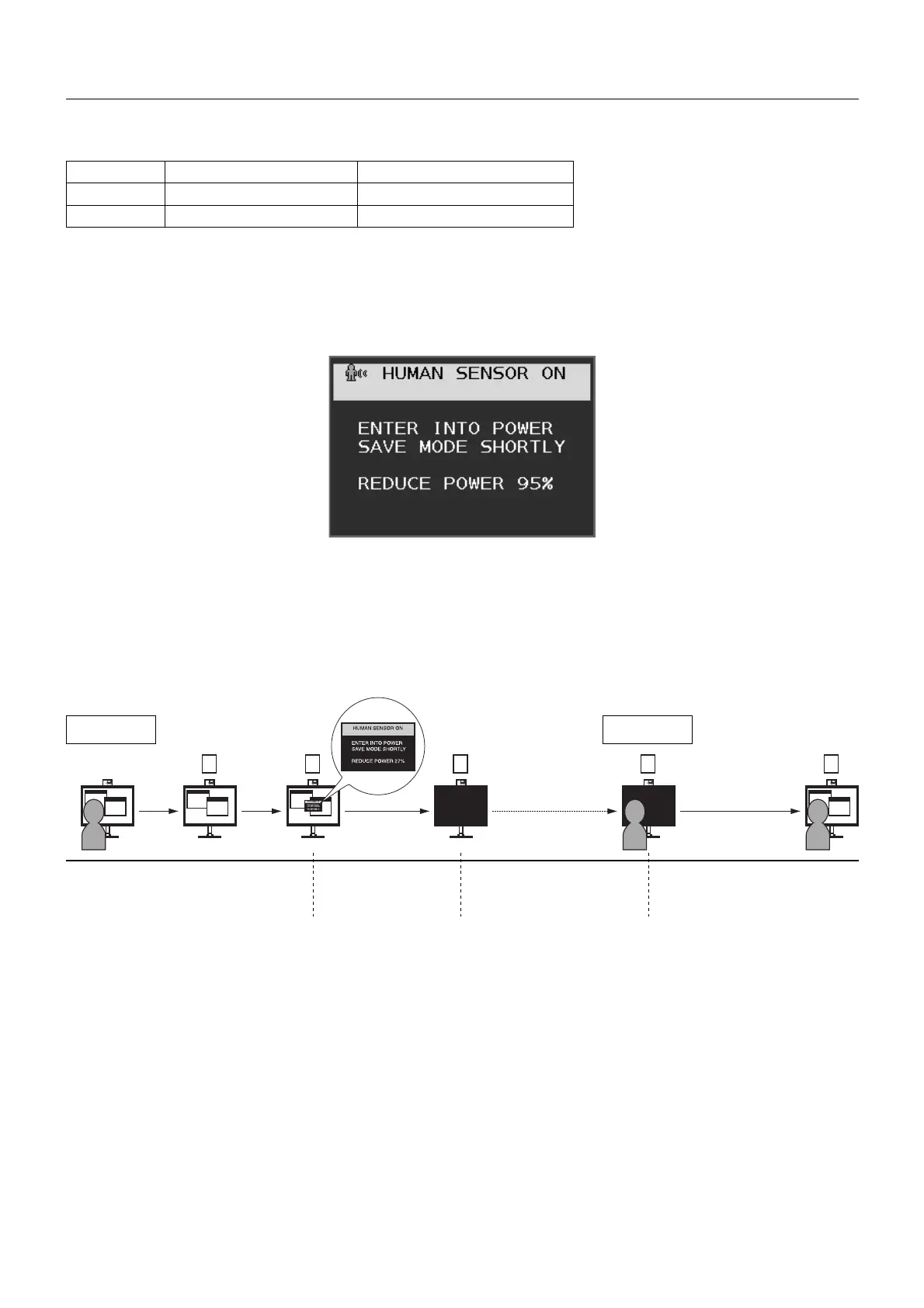 MODE HUMAN SENSING SETTING No person in front of the monitor