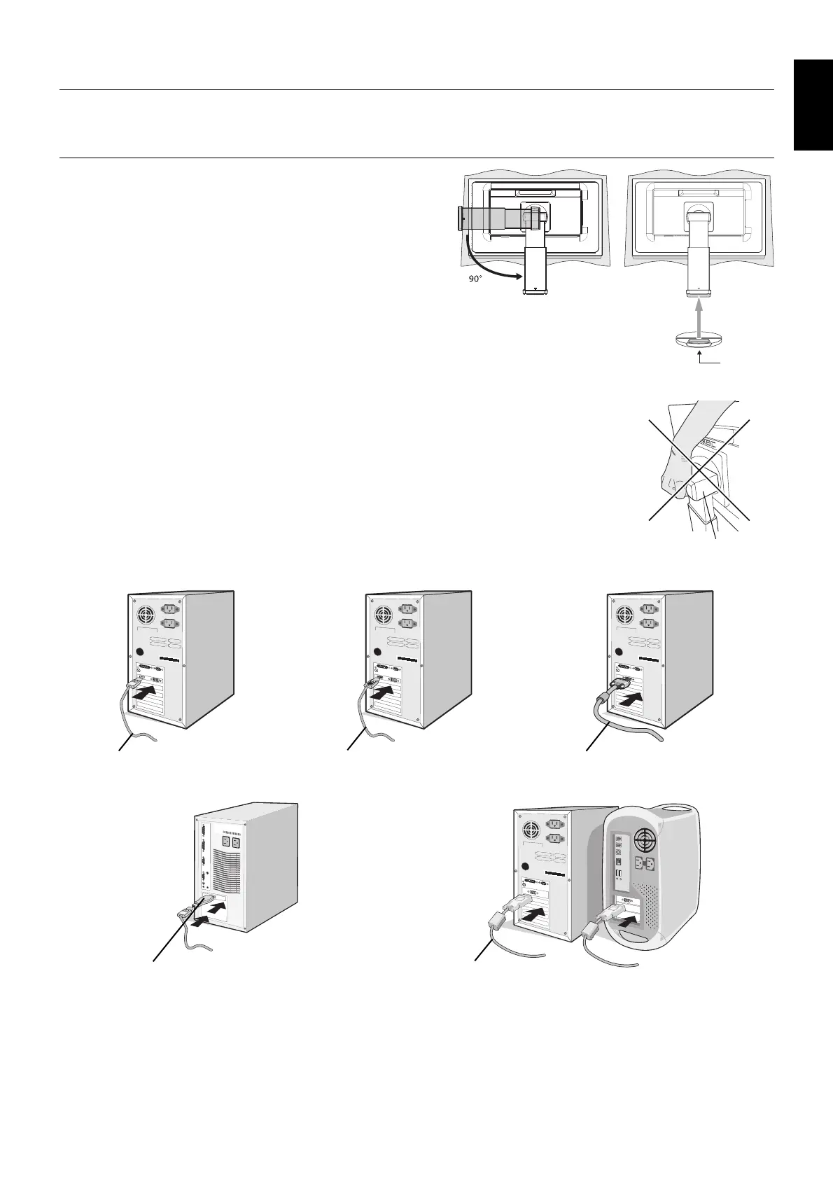 For a PC with Analog output: Connect a 15-pin mini D-SUB signal cable to the connector of the