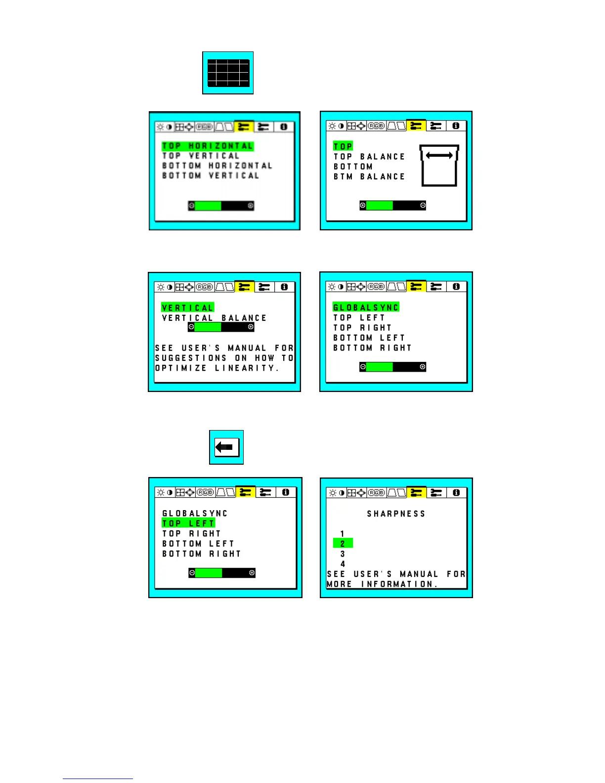 (Fig. 6.15) SUB MENU(u) - “GLOBALSYNC 2” (Fig. 6.16) SUB MENU(u) -“SHARPNESS”