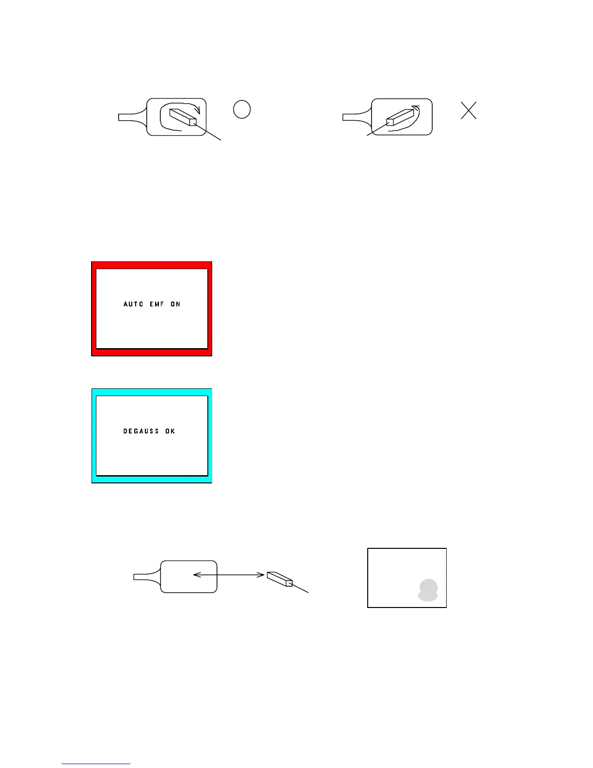 Starting from edge of CRT, move the degaussing coil toward CRT center in circular motion, spending 6 to 7