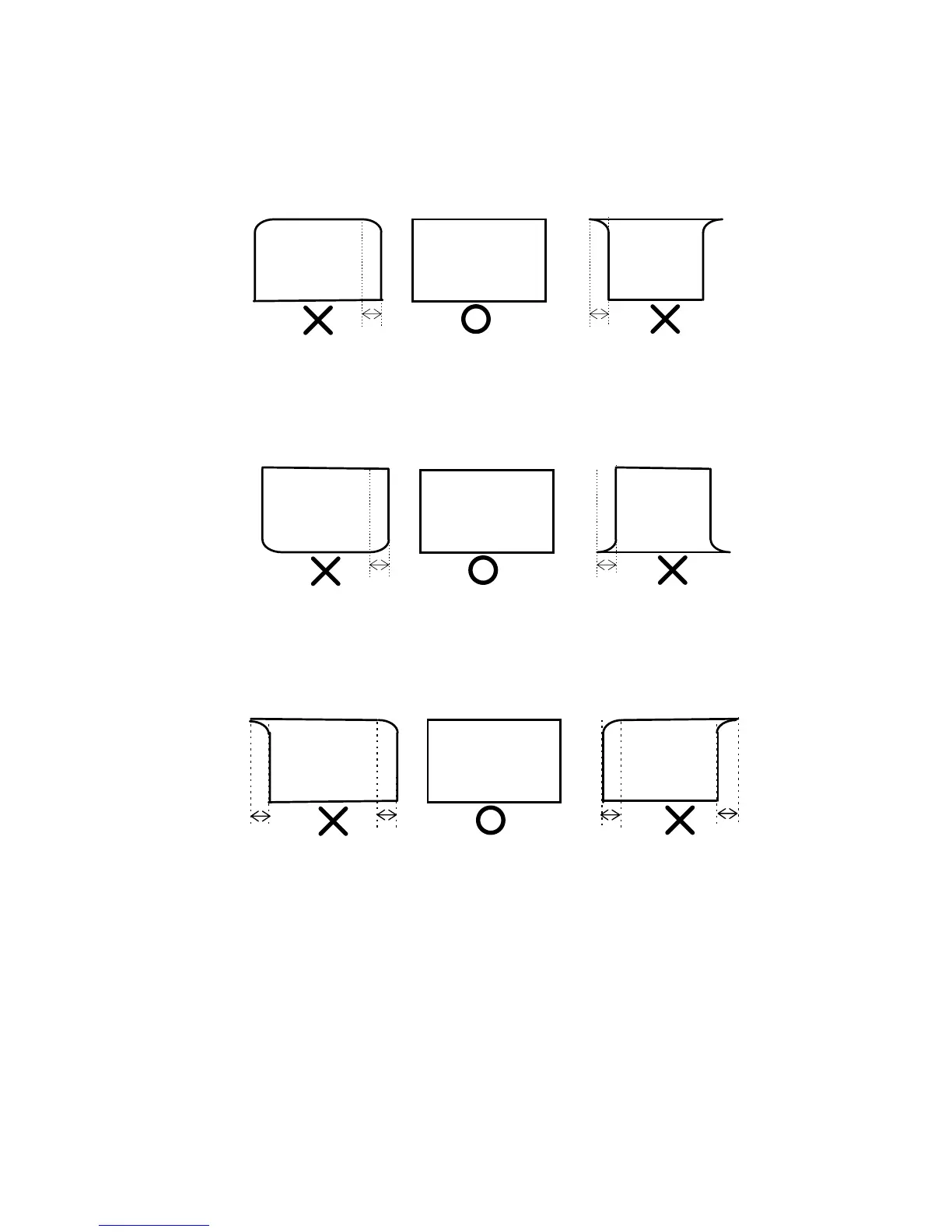 Adjust "+", "-" SW so that the bottom corner forms a right angle. (maximum ± 1.0 mm)
