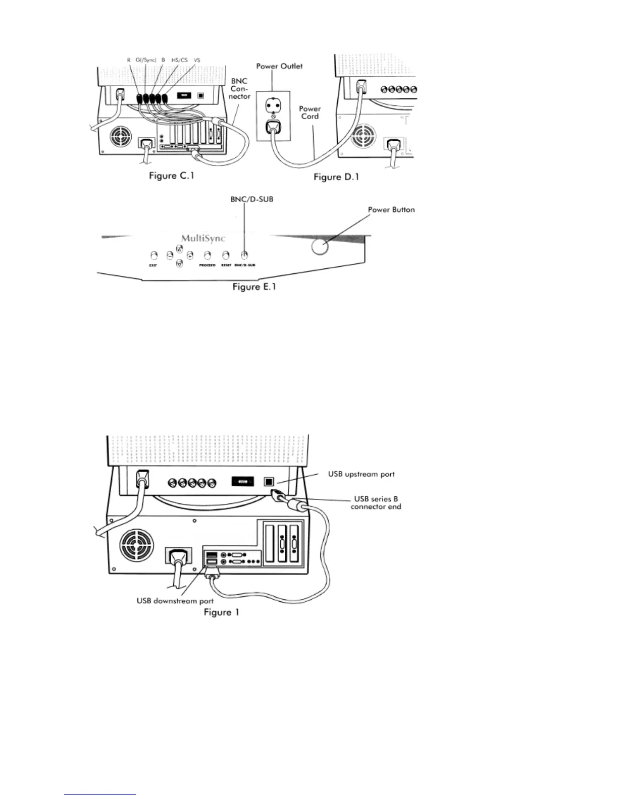 attach the USB port on your MultiSync FP Series monitor to a USB port on your system: