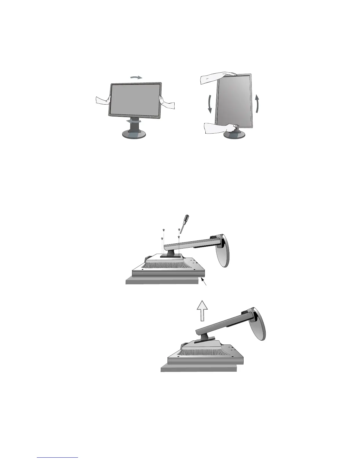 NOTE: In order to avoid stand drop, when removing screws, please support stand with your hand.