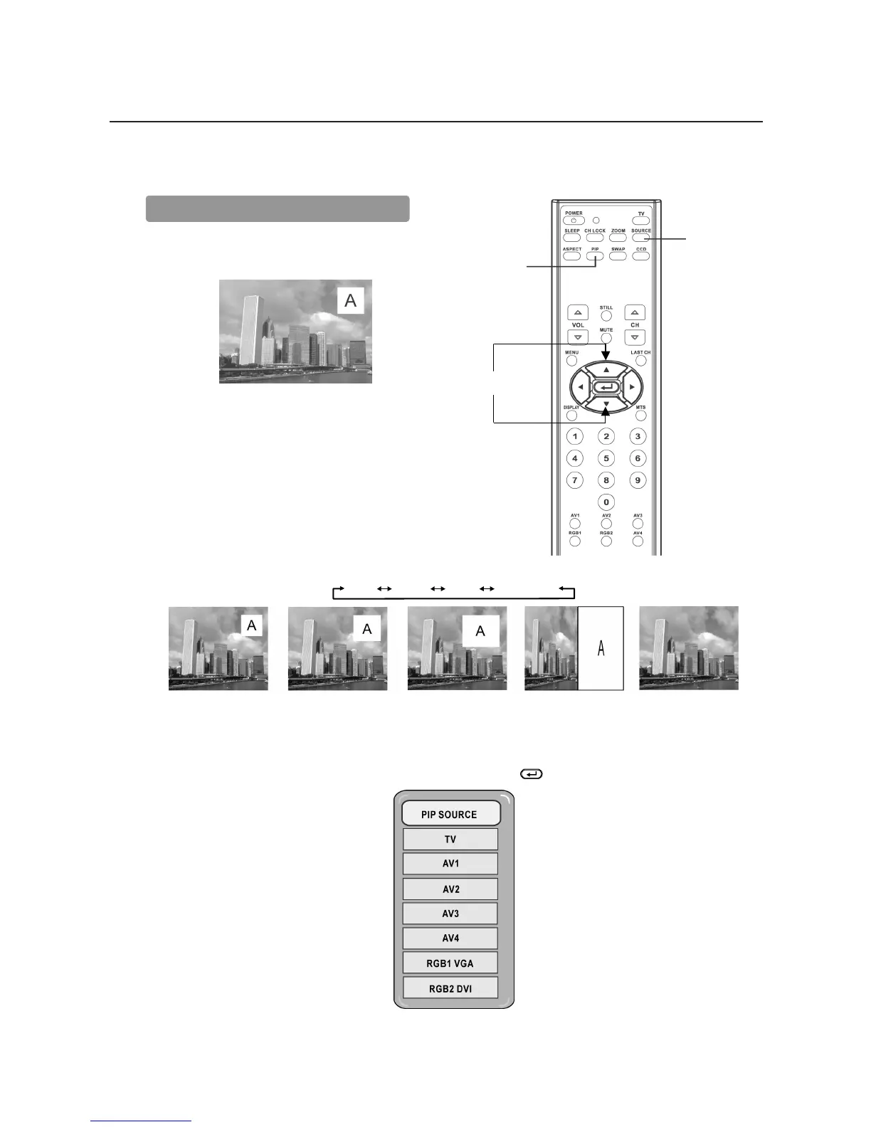While a black box appears on the screen, press SOURCE button and PIP SOURCE menu appears.