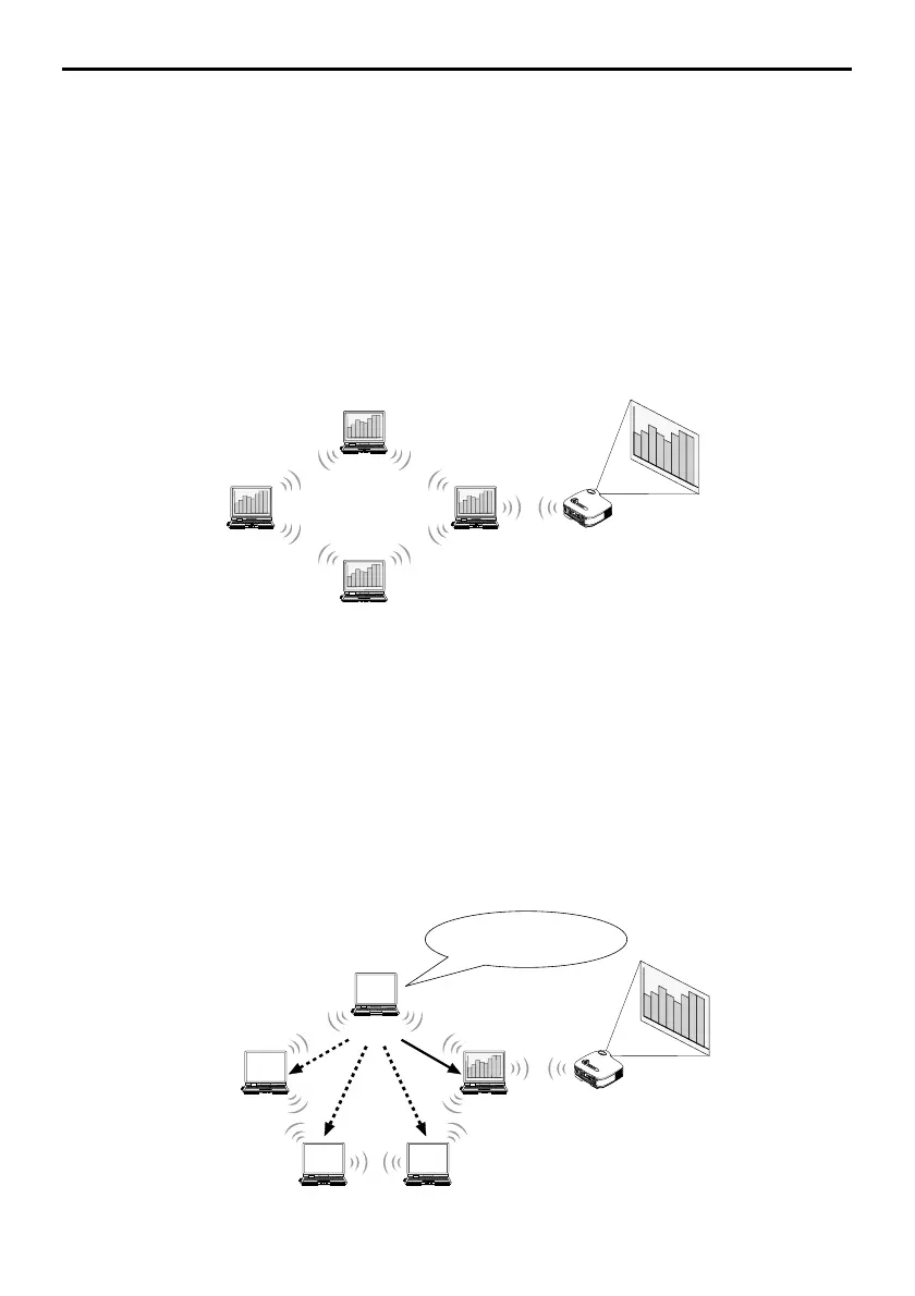 When "Meeting Mode" is used, projected images can be sent to the personal computers of