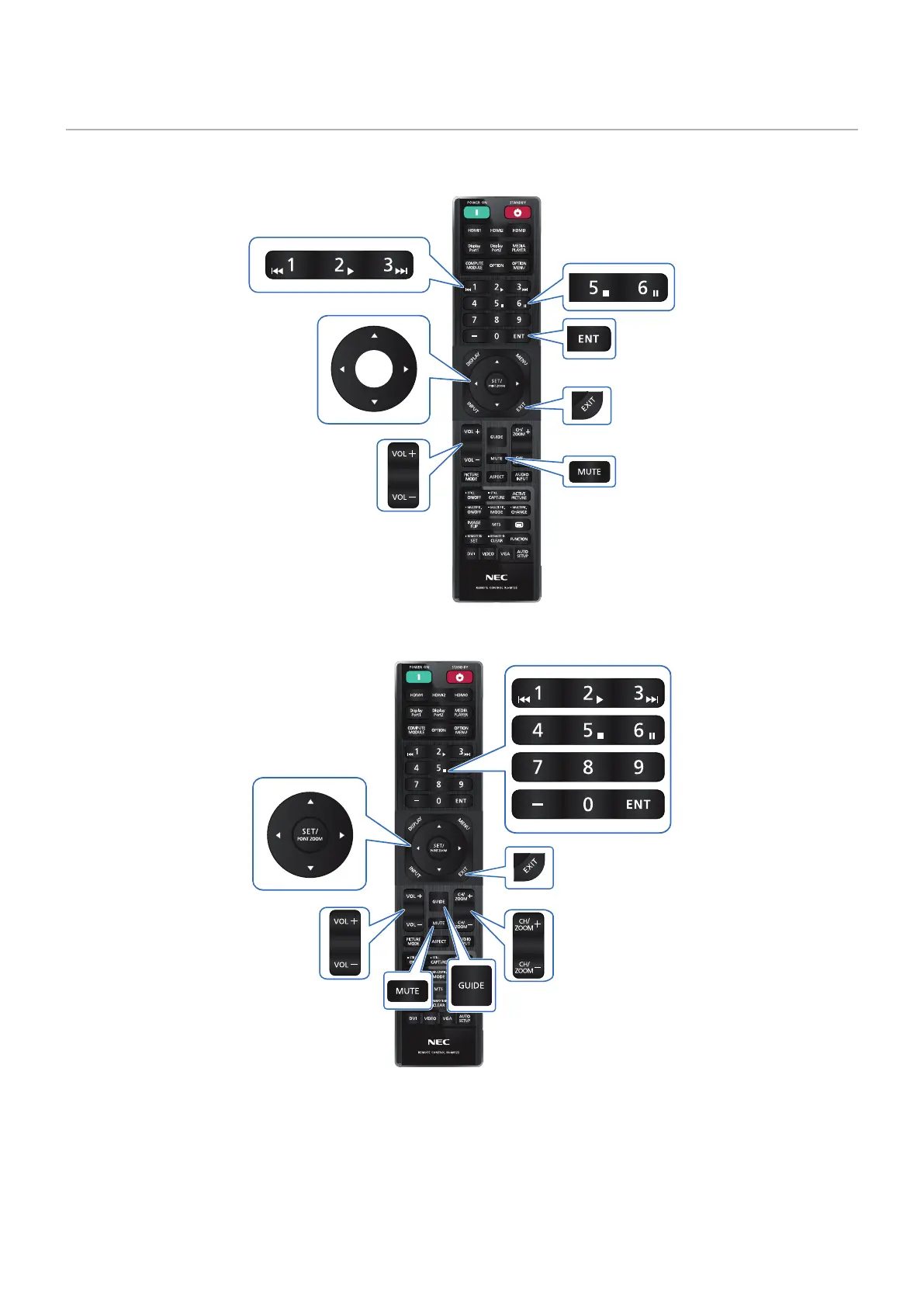NEC MultiSync M751 - HDMI-CEC Remote Control Button Functions