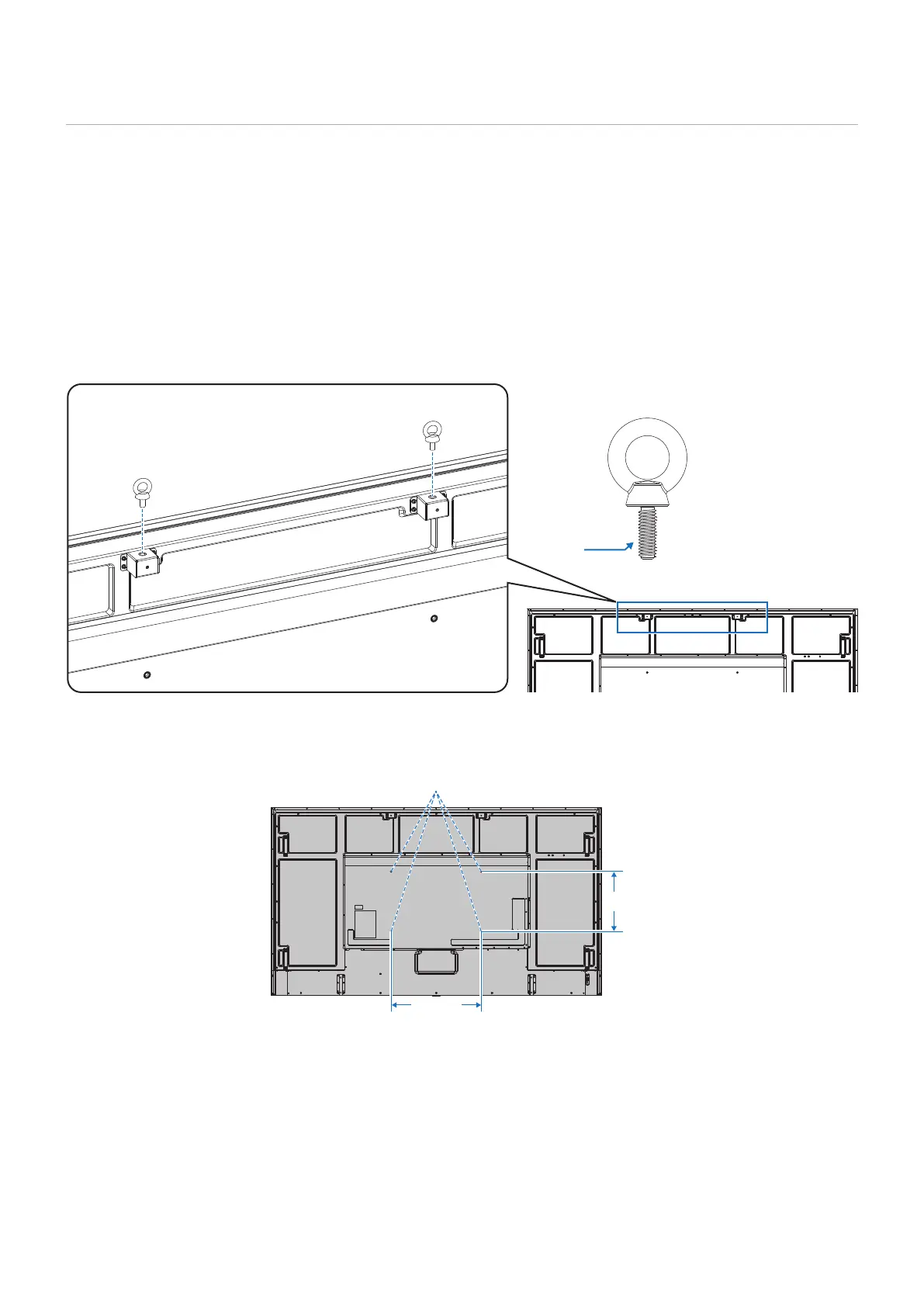 • Do not mount the monitor using only the eyebolts. Eyebolts are for temporary use only.
