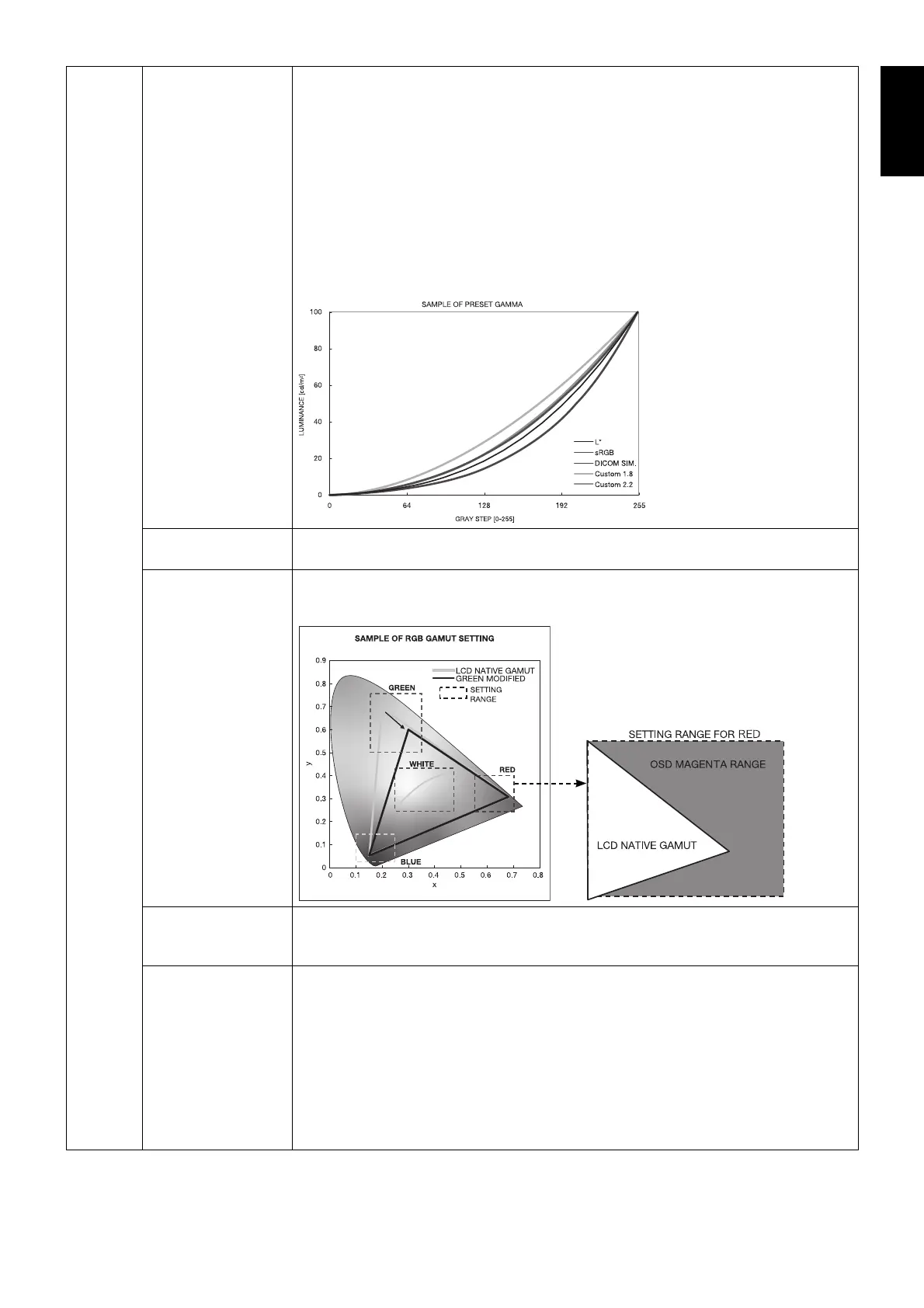 Adjusts color gamut. When the selected settings are outside of the LCD gamut, the