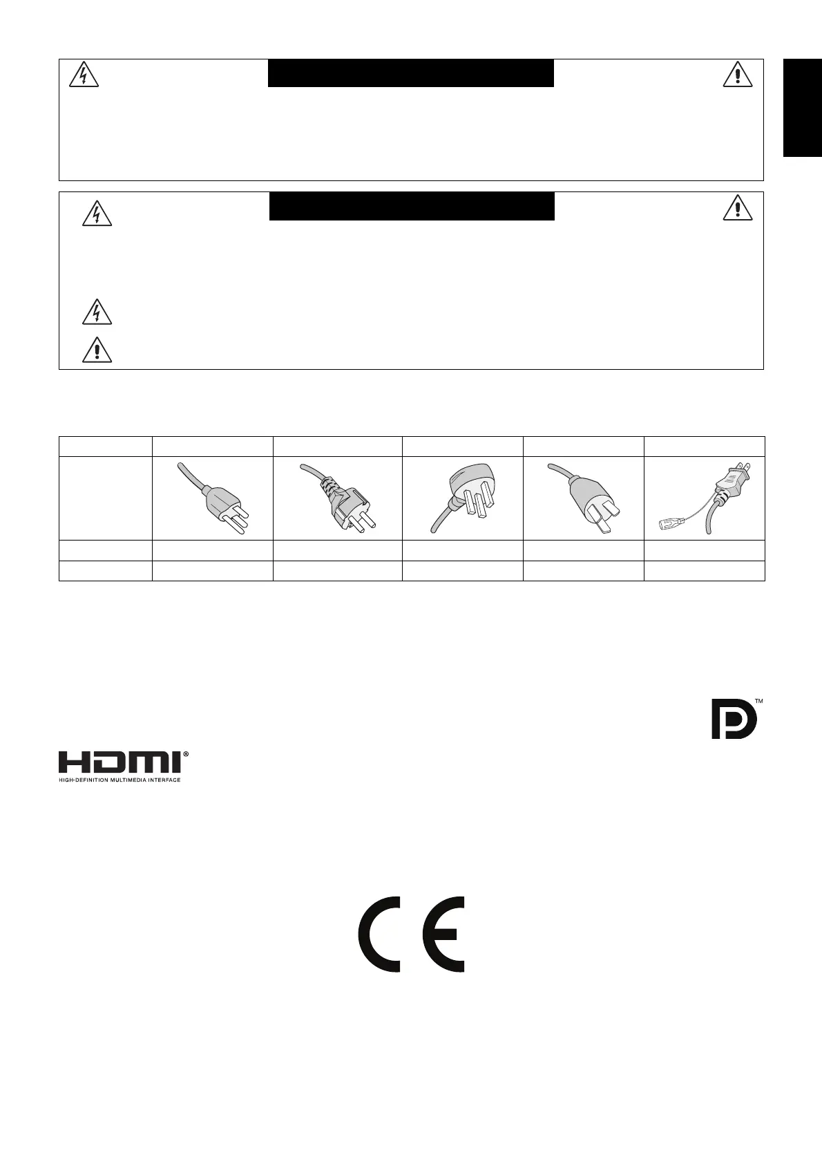 CAUTION: Please use the power cord provided with this display in accordance with the table below. If a power cord is not
