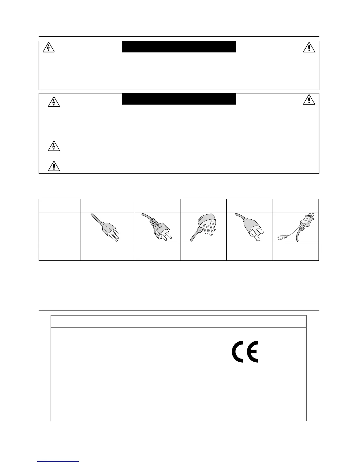 CAUTION: Please use the power cord provided with this display in accordance with the table below. If a power cord is not