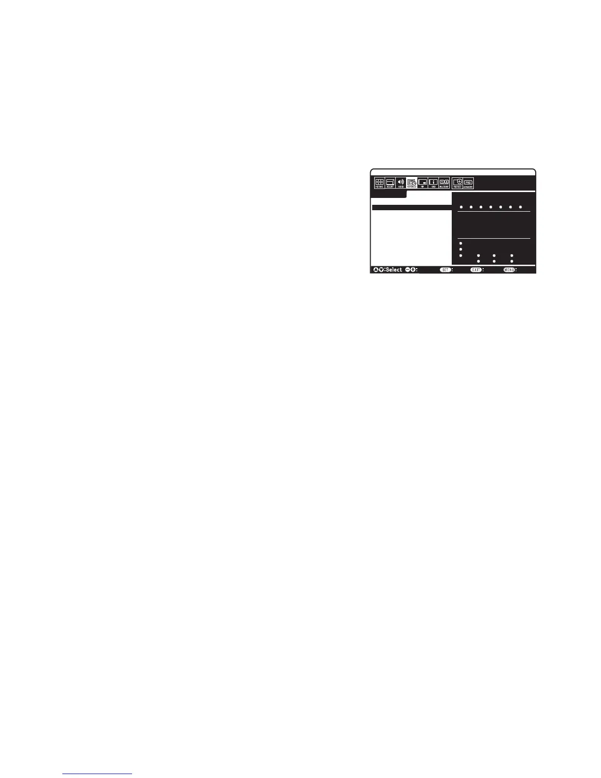 3. Use the up and down arrows to highlight INPUT. Use the + and - buttons to choose the input source. Use the up and down arrows to highlight