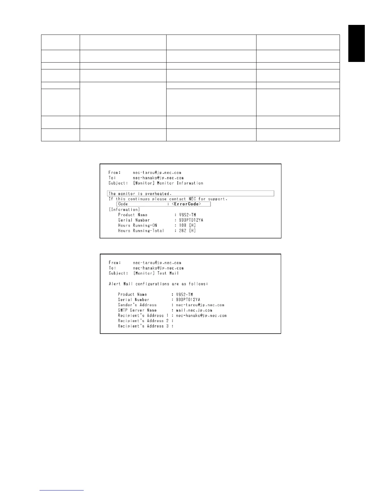 Sample: The following examples are content of Alert Mail that informs the temperature anomaly of monitor.