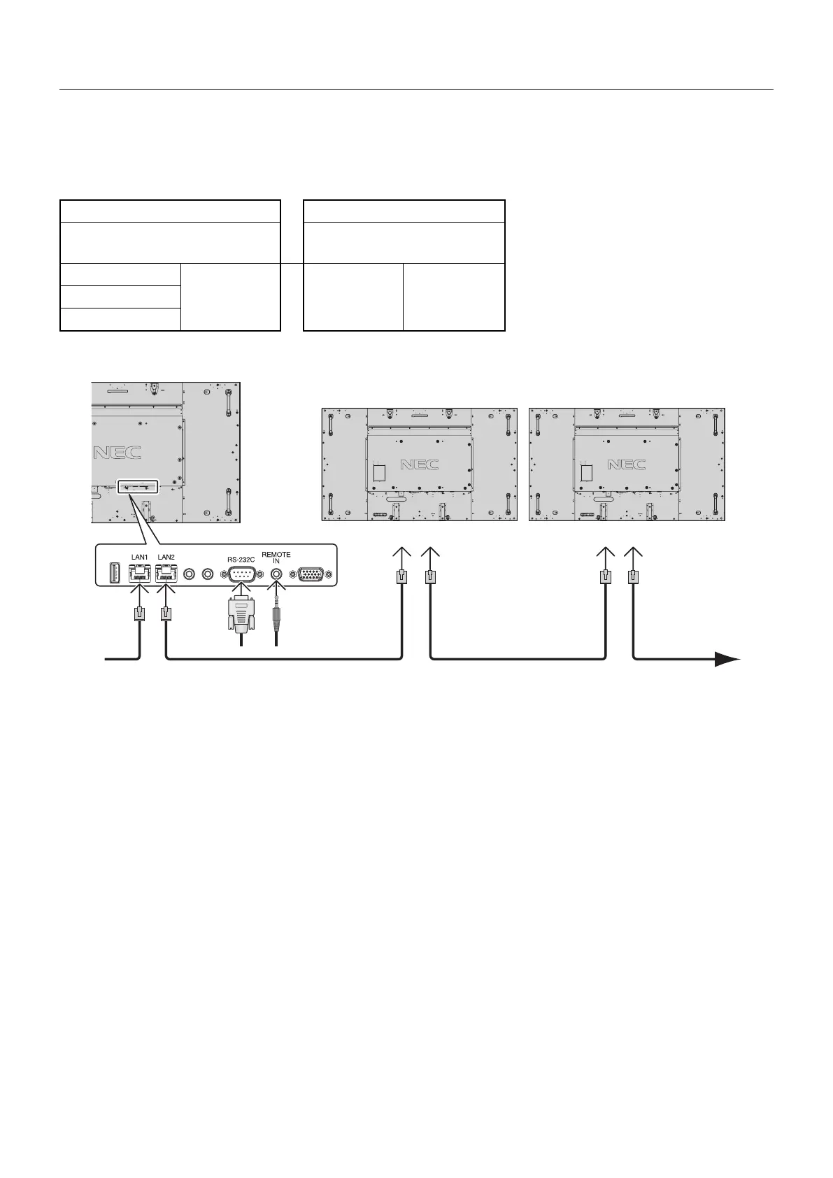 You can control multiple monitors by using RS-232C, REMOTE IN or LAN daisy-chain connection.