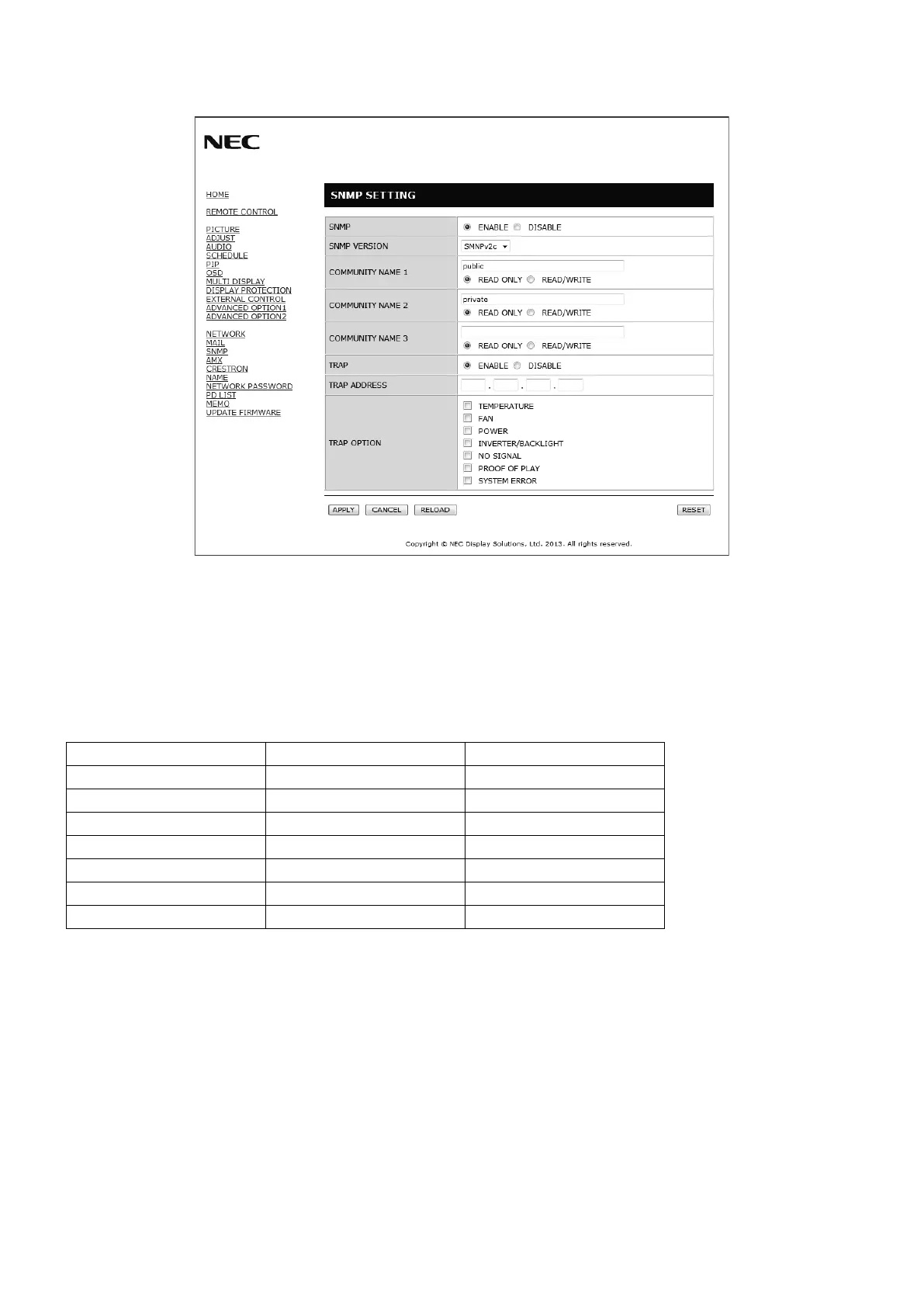 The default setting of community name is “public”. It is read only. You can set community names for up to 3 settings.