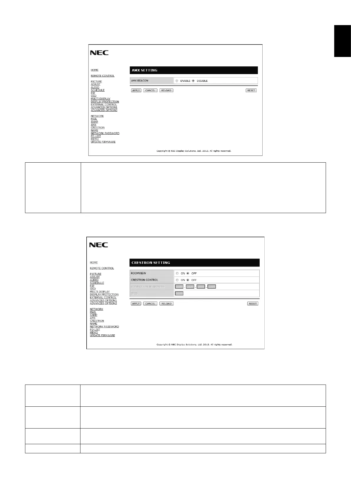 TIP: The CRESTRON settings are required only for use with CRESTRON ROOMVIEW.