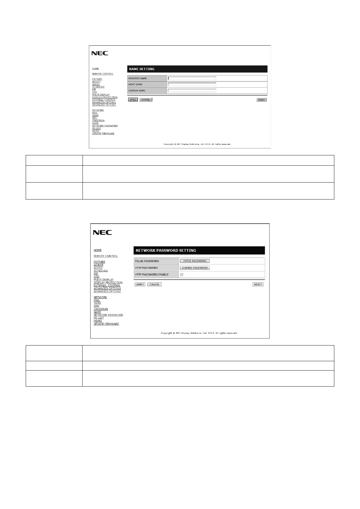 PJLink PASSWORD Set a password for PJLink*. A password must be 32 characters or less. Do not forget your password.